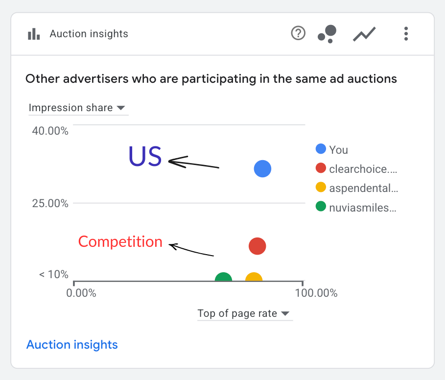 Our campaigns regularly achieve higher impression share and top-of-page visibility in competitive search auctions. Meaning your practice appears more often and more prominently than competing providers when patients are actively searching.