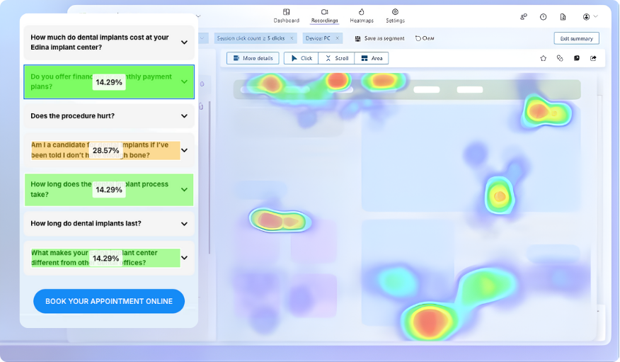 We don’t guess what works. We track how real patients scroll, click, read, and hesitate, then we improve the pages based on how people actually behave, not assumptions.